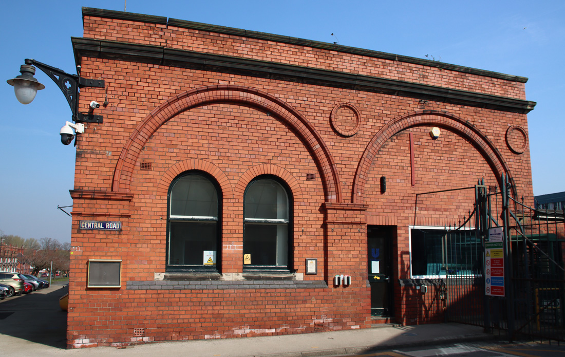 Part of Central Road, Port Sunlight, leading past the office buildings and through the gates into the factory zone