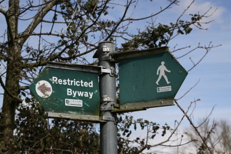 Follow the footpath to the east end of the restricted byway (RB16 on the map above), turn left and proceed along footpath FP8 along the Roman road
