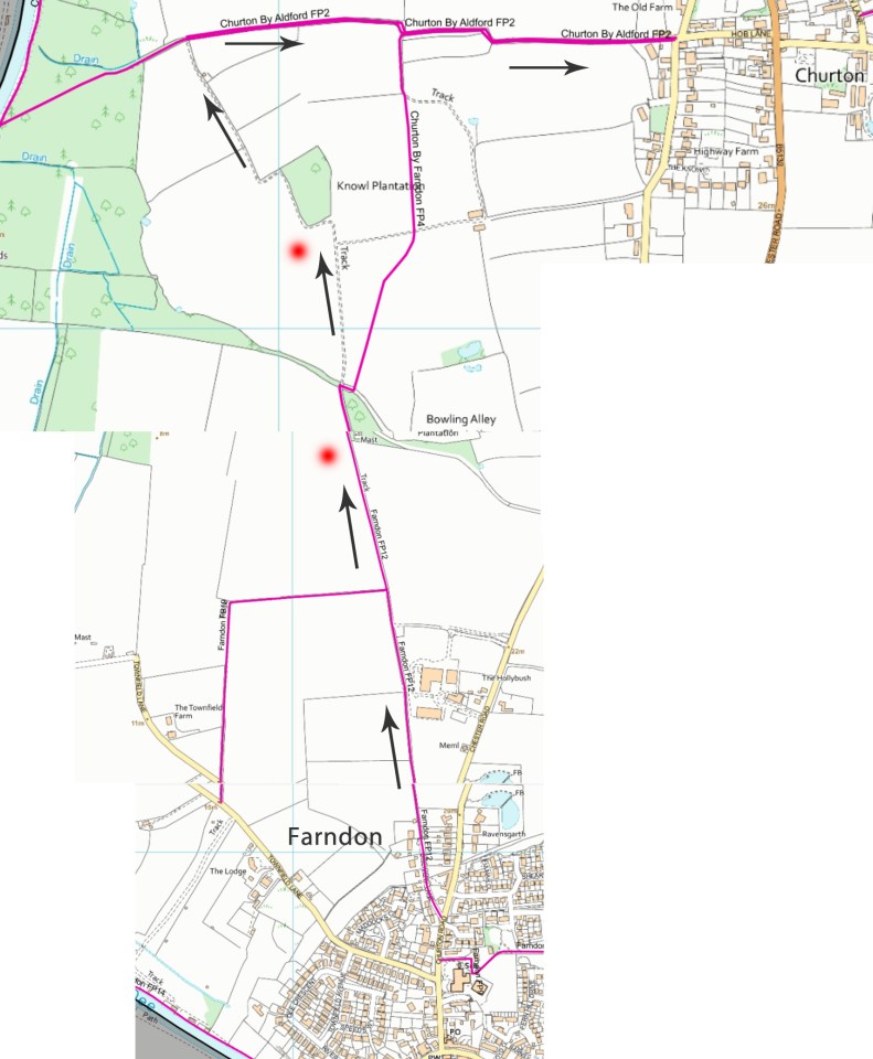 Farndon to Churton PMV walk Next → The return leg of the walk from Churton to Farndon, starting at Brewery Lane. Source of map: Public Map Viewer