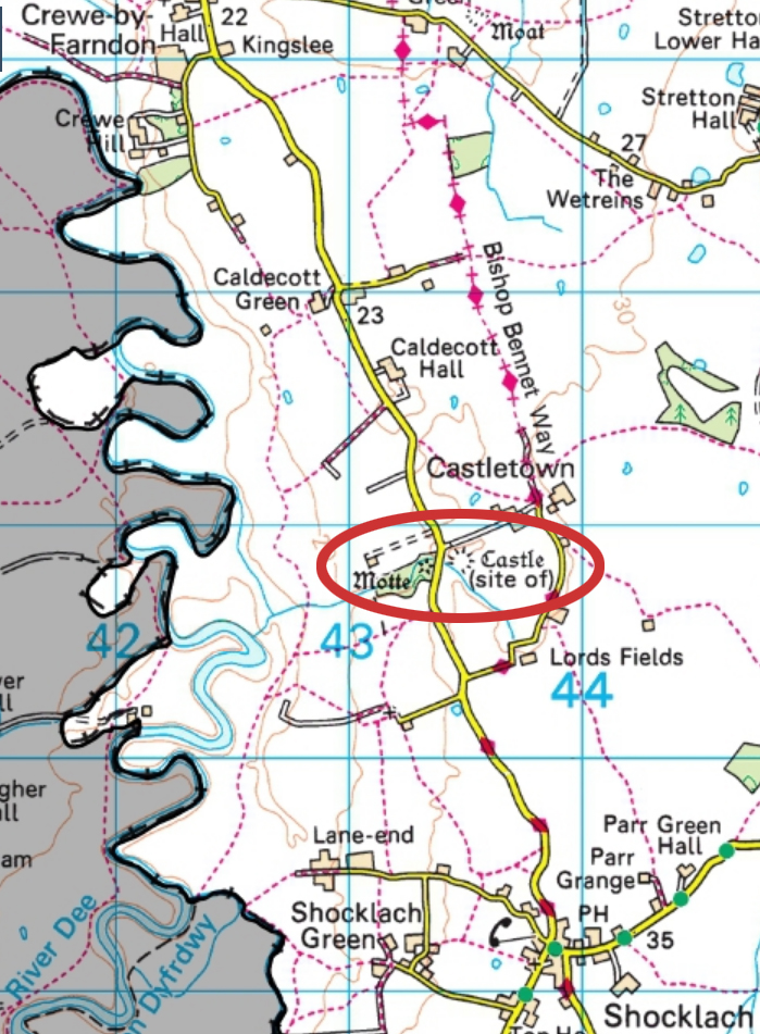 Shocklach Public Map Viewer ← Previous Next → The location of the Castletown / Shocklach motte, south of Crewe by Farndon and to the north of Shocklach. Source: Public Map Viewer