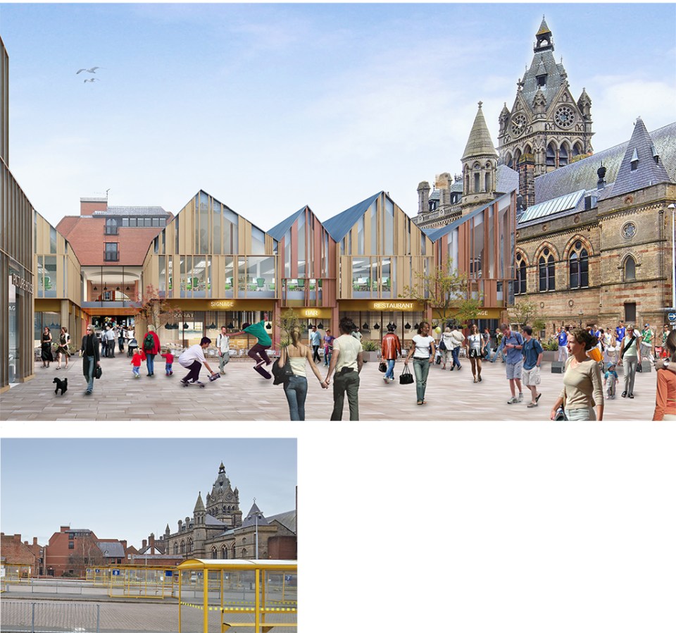 Market Sq Rear Architect Preview ← Previous Architect’s view of the new market place at the rear of the Town Hall