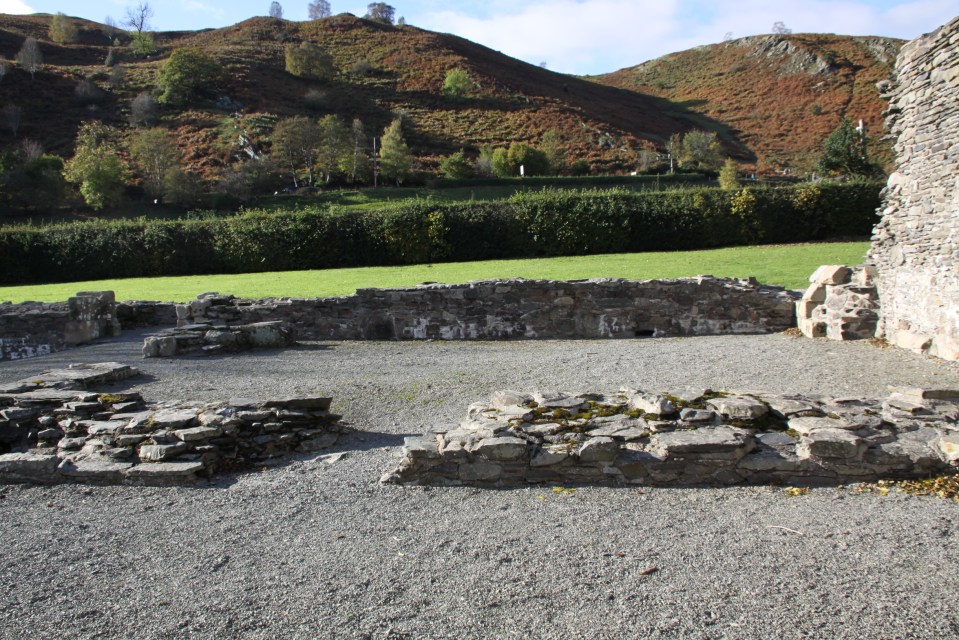 West range ← Previous Next → Part of the west range, showing the south wall of the abbey church at far right
