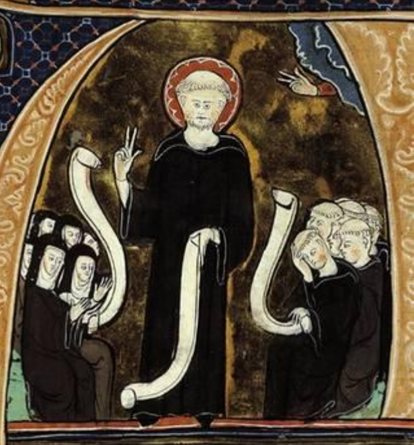 St Benedict Next → Detail of a 13th Century illuminated manuscript showing St Benedict of Nursia. Source: Cover of Carolinne White’s The Rule of St Benedict (Penguin Classics)