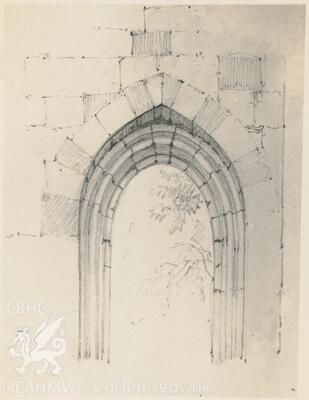 Valle Crucis archway Coflei ← Previous Next → Early pencil sketch showing archway at Valle Crucis Abbey. Source: Coflein