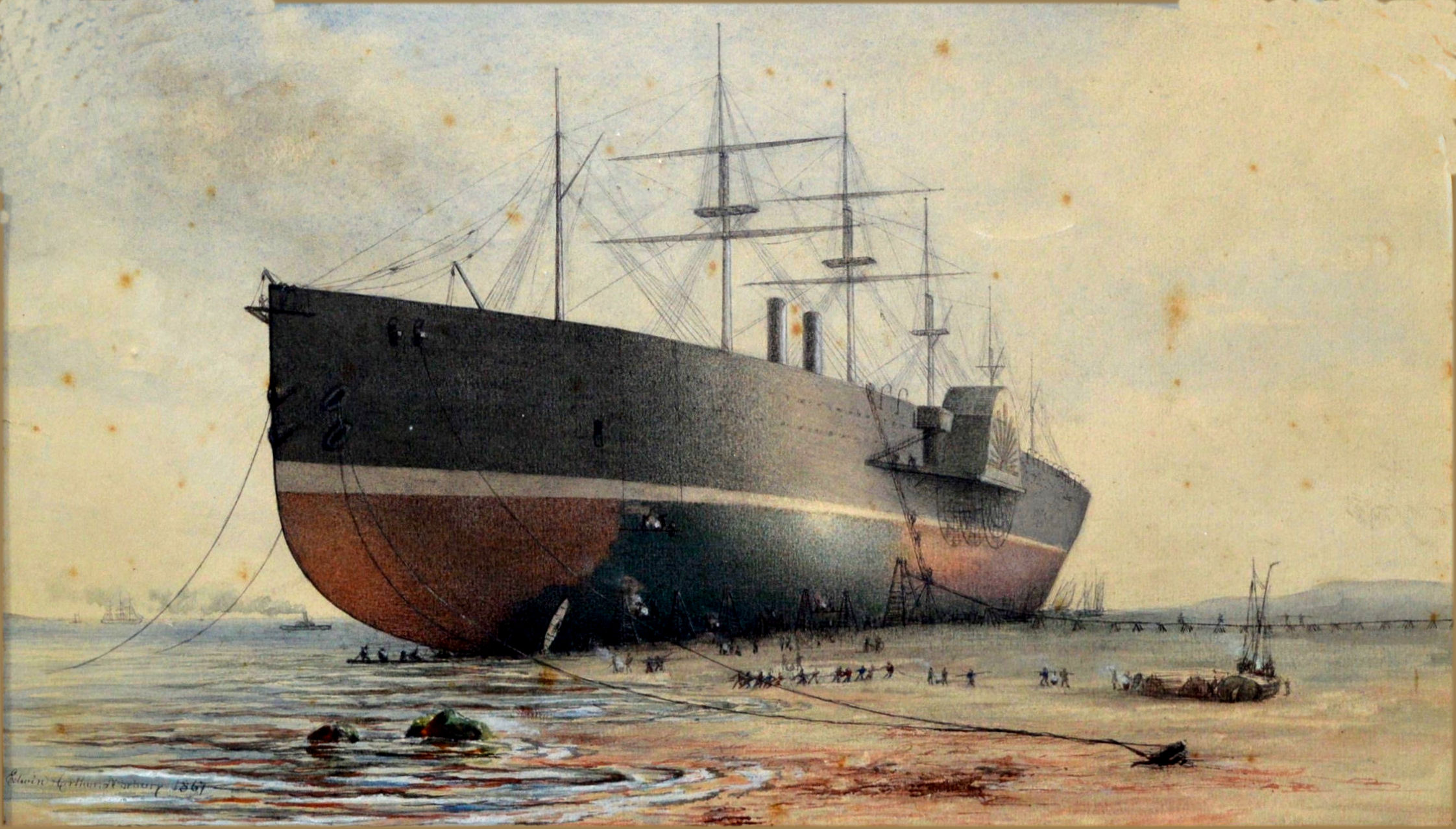 https://www.artwarefineart.com/gallery/great-eastern-beached-gridiron-new-ferry-cheshire-bank-mersey-february-1867-workers