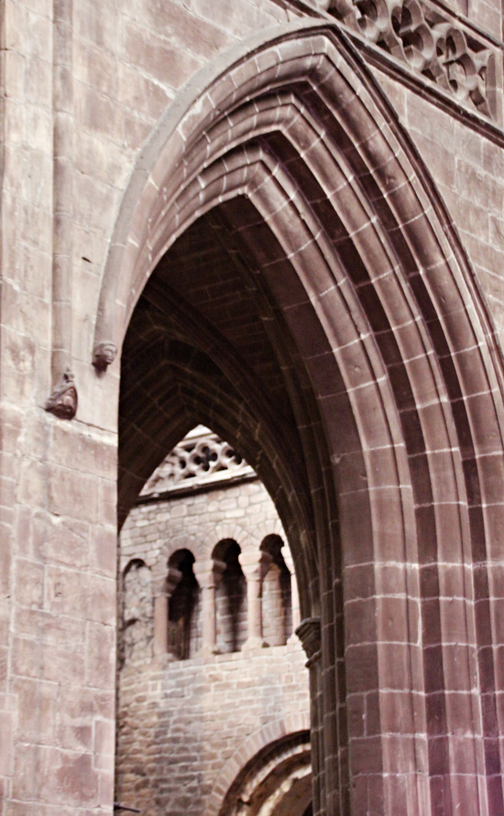 Romanesque remnants seen through a gothic arch at Chester Cathedral.
