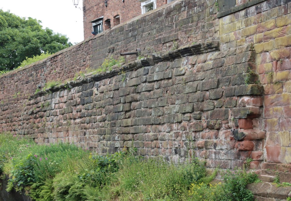 IMG_0135 ← Previous Next → Section of the Chester City walls thought to be Roman, sitting on bedrock above the canal.