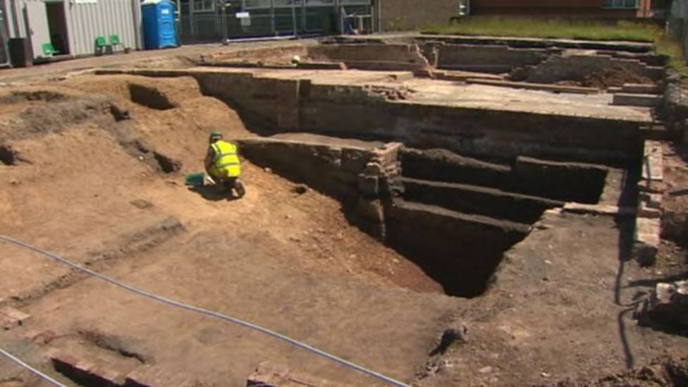 Excavation 2015 Flint defenses ← Previous Next → Excavations in 2015 explored what are thought to be part of the town’s defences. Source: BCC