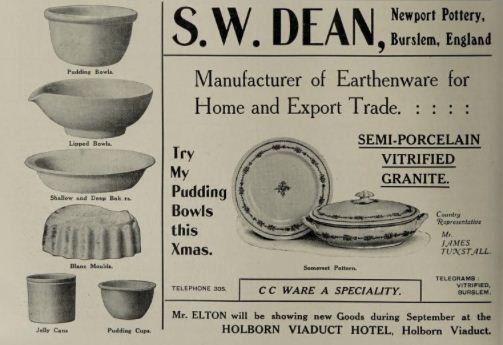 SW Dean Oct 1908 Pottery Gazette Ad ← Previous Next → Advert from the Pottery Gazette of October 1908. Source: A-Z of Stoke On Trent Potteries