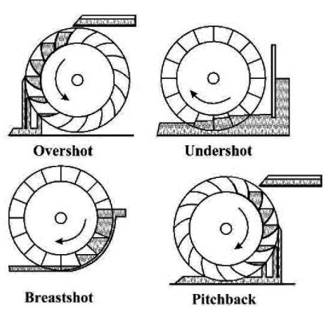 Mill types Forde End guide ← Previous Next → The main types of waterwheel. Source: Ford End Watermill Guide
