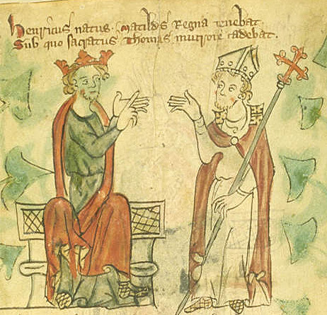 Henry Becket argue Royal 20 A II f7v BritLib ← Previous Next → King Henry II and Thomas Becket, Archbishop of Canterbury in an argument. Source: British Library