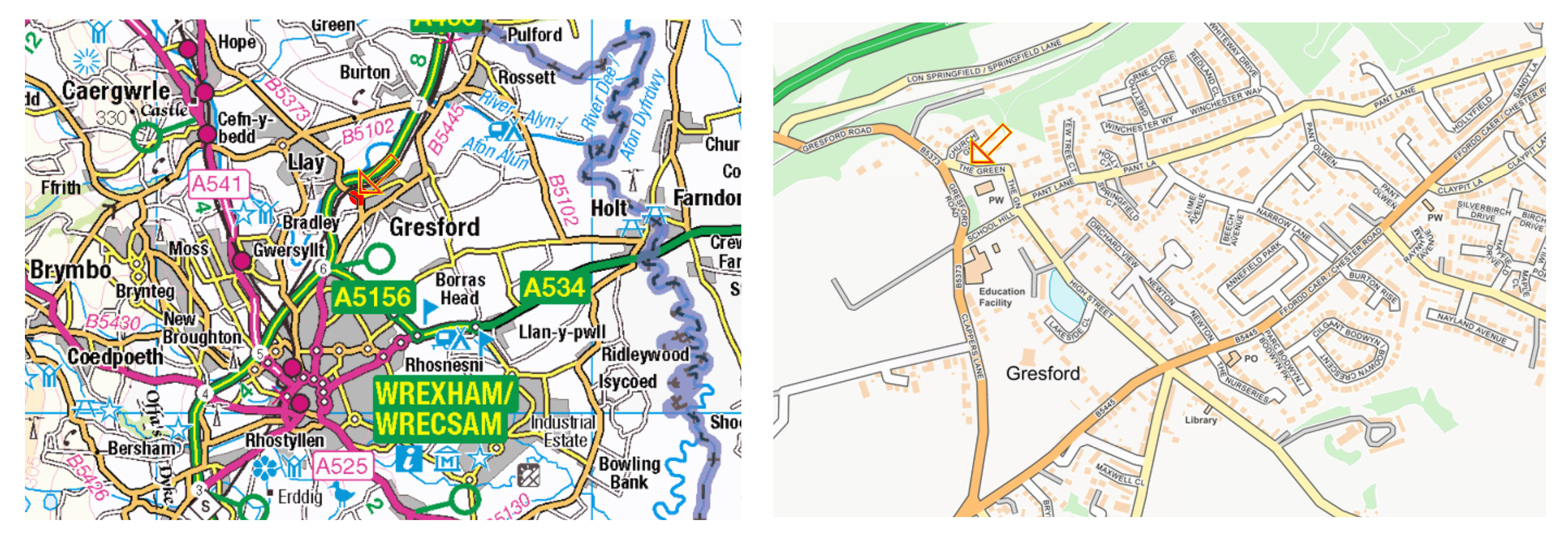 StreetMapCoUK Gresford Next → The location of the Church of All Saints in Gresford. Source: streetmap.co.uk