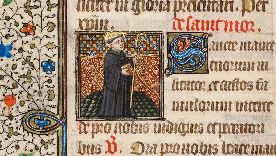 Abbot Maurus Getty Mus ← Previous Next → Abbot with staff and book. MS. Ludwig IX 6 (83.ML.102), fol. 222v. Source: Getty Museum https://www.getty.edu/art/collection/object/105VKA#full-artwork-details