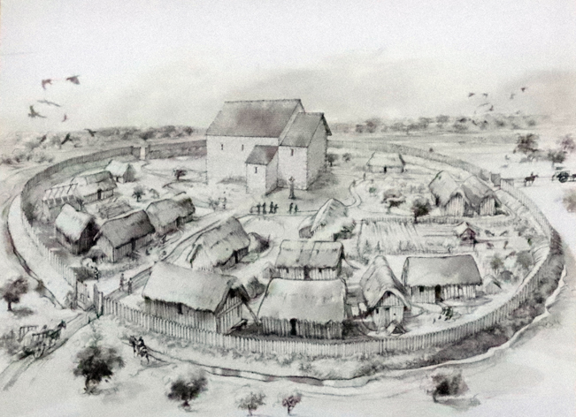 IMG_0695a ← Previous Next → Artist’s impression of Medhamstede, shown on an information poster in the cathedral