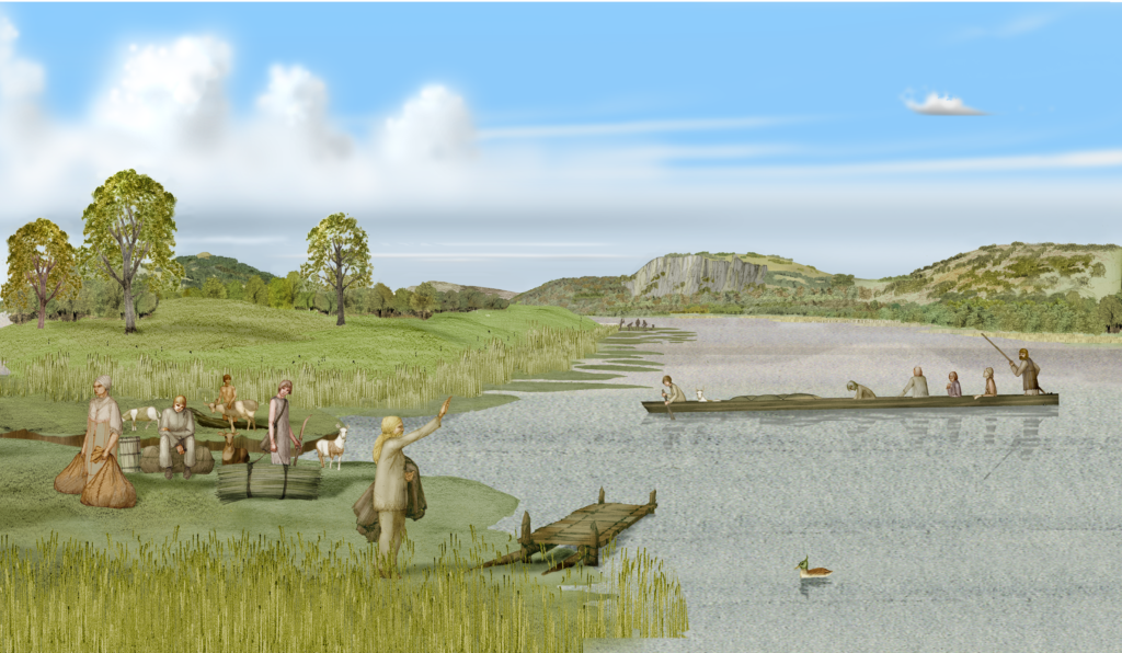 Carpow-transporting people across the Tay ← Previous Next → Artist’s impression of the Carpow logboat transporting people across the river Tay