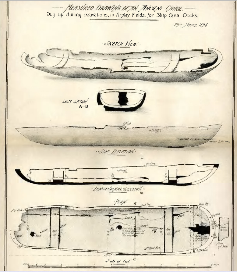Logboat Arpley Meadow Mar94 ← Previous Next → Arpley Meadow Logboat March 1884 by Charles Madeley. Source: Madeley 1894