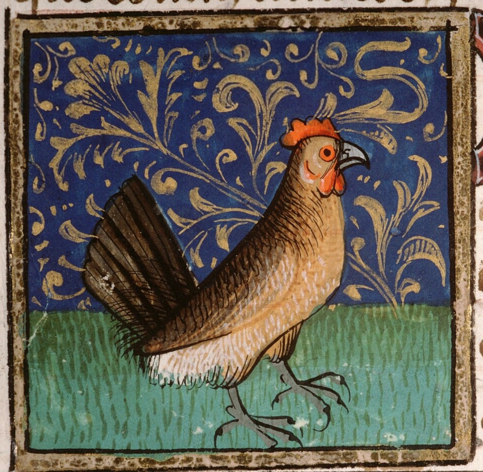 A hen posing on the grass.