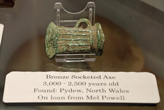Pydew socketed axe ← Previous Next → Bronze socketed axe head from Pydew, in the hills above Llandudno Junction, to the southeast of the Great Orme north Wales.
