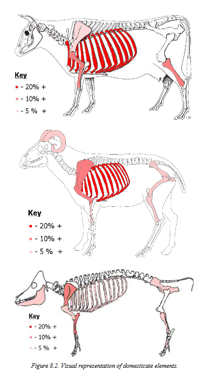 Sian James animal bone usage ← Previous Next → Visual representation of domesticate bone elements found in the mine. Source: James 2011.