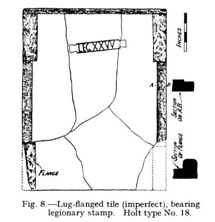 Newstead fig 8 1937 ← Previous Next → Tile bearing legionary stamp. Source: Newstead 1937 (National Library of Wales)