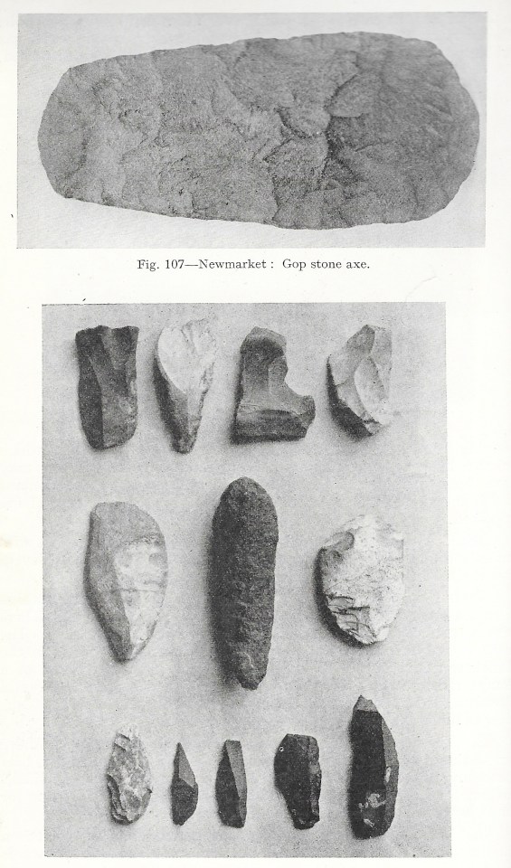 Davies 1949 Gop NW ← Previous Next → Objects found by Harris and Allen in Gob Cave, including the Graig Lwyd axe at top. Source: Davies 1949.