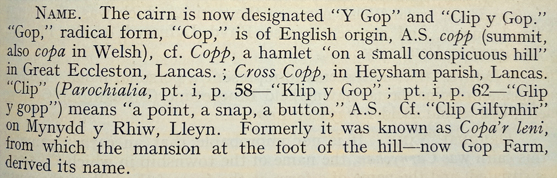 Gop ← Previous Next → Suggestions for the derivation of the name Gop. Source: Ellis Davies 1949, p.159