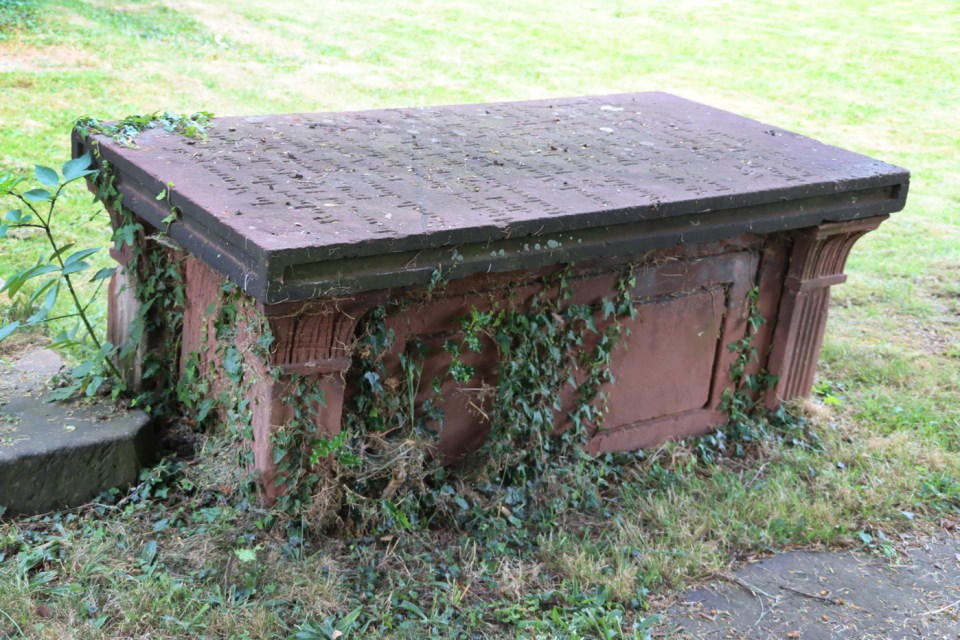Red sandstone chest tomb ← Previous Next → Red sandstone chest tomb with pillasters at each corner. 1971.