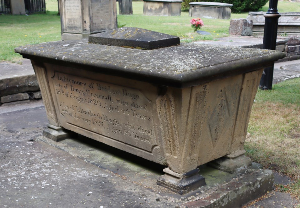 IMG_6620 ← Previous Next → A rather more elaborate chest tomb than earlier forms, raised on feet and provided with a lid rather than a simple ledger, with decorated panels. The first-mentioned deceased was from Truro in Cornwall, who died aged 44 in 1820