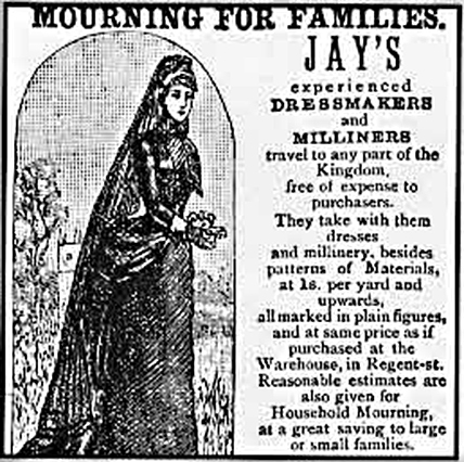 Victorian_mourning_garb ← Previous Next → Mourning clothes were a major investment in the Victorian funeral ceremonies. Source: Wikipedia
