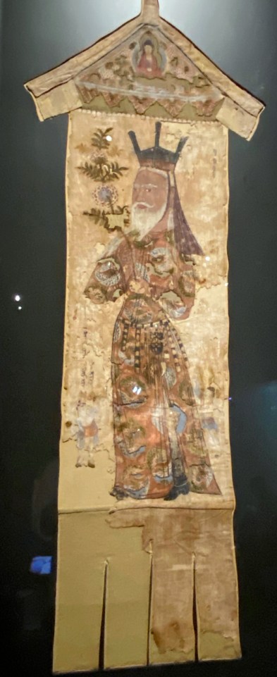 IMG_2287a ← Previous Next → Funerary banner of a high-ranking Uyghur, perhaps a royal minister, named Kara Totok, wearing horse-riding attire. Museum fur Asiasfische Kunst.