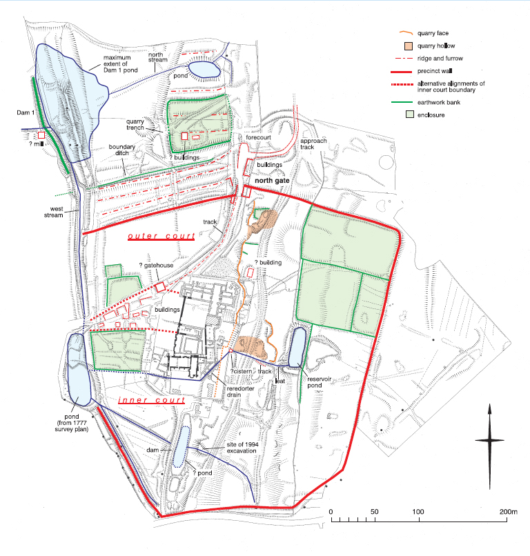 Plan showing medieval features ← Previous Next → Interpretative plan of the abbey. Source: Pearson et al survey report 2003, English Heritage (see Sources at end).
