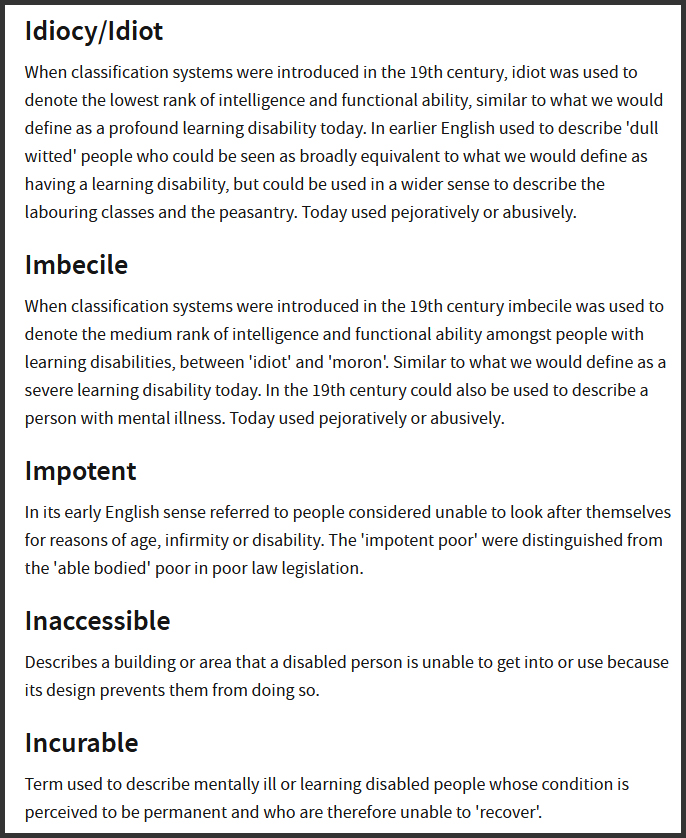 Historic England Glossary of Disability ← Previous Next → Excerpt from Historic England’s Glossary of Disability