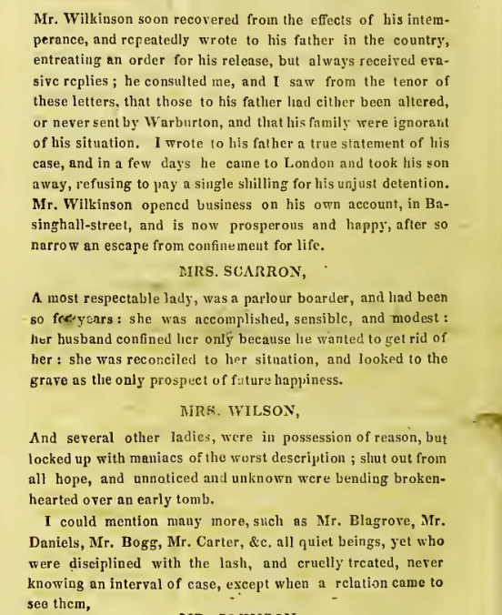 Mitford Crimes and Horrors ← Previous Next → A page from Mitford’s “Crimes and Horrors in the Interior of Warburton’s Private Mad-House at Hoxton.” Source: Internet Archive
