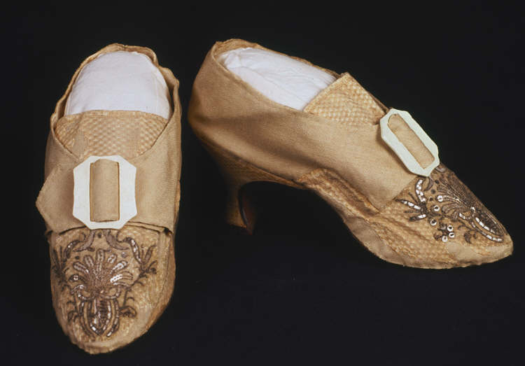 Pair of shoes reputedly Eleanor PeoplesCW Plas Newydd ← Previous Next → A pair of embroidered shoes reputedly worn by Lady Eleanor Butler. Source: People’s Collection Wales