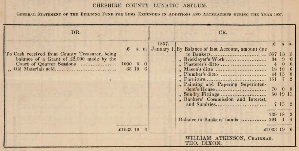 1857 general statement asylum building fund