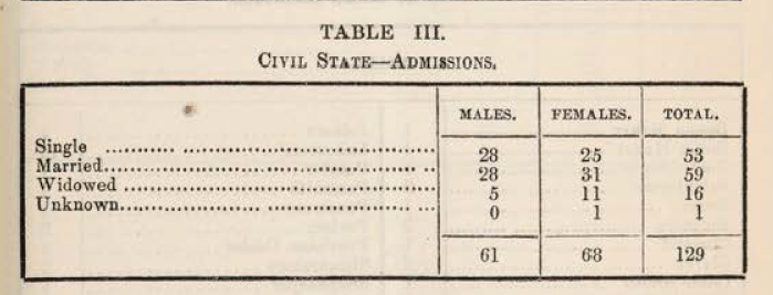 1861 Civil State Admissions ← Previous Next → Marital status of patients at time of admission in 1861