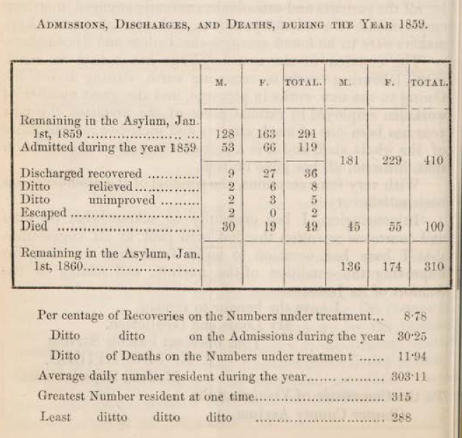 Admissions asylum discharges death 1860 report