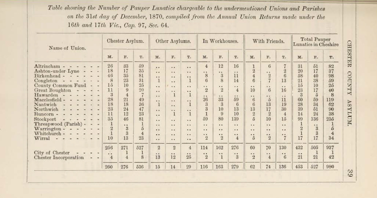 Chargeable pauper admissions asylum ← Previous Next → Chargeable pauper admissions from the 1870 report
