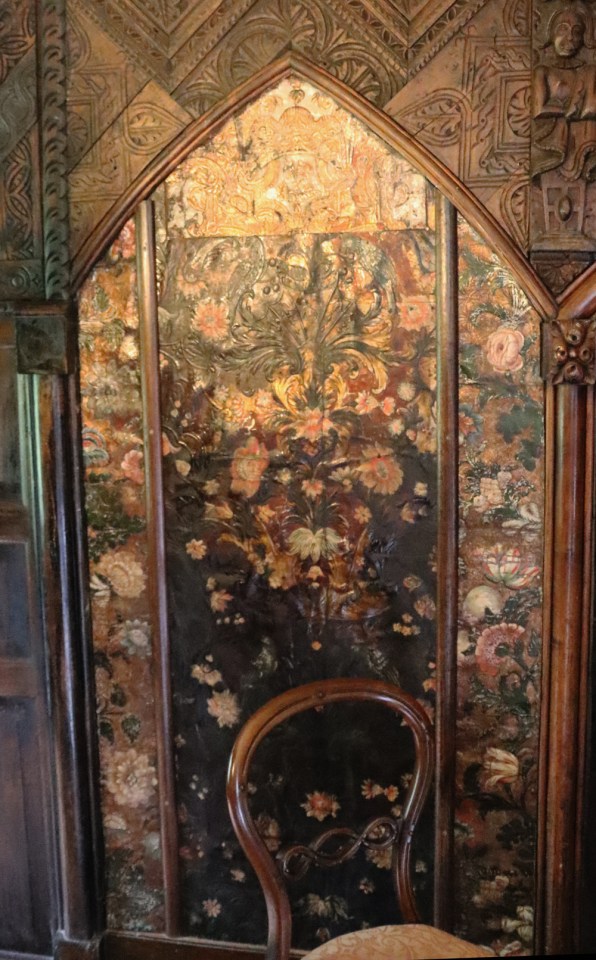 Gilt leather wall hanging. The Oak Room