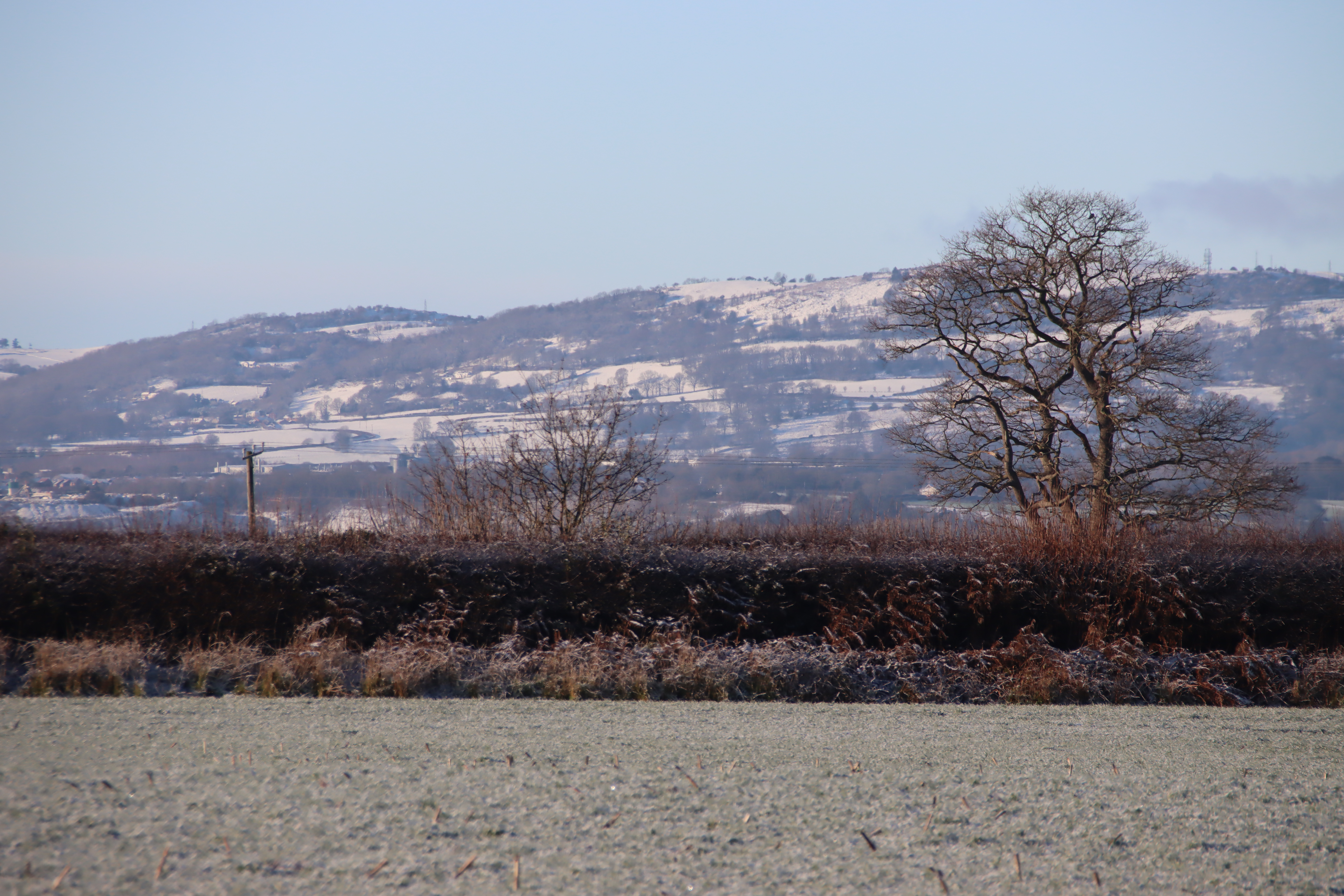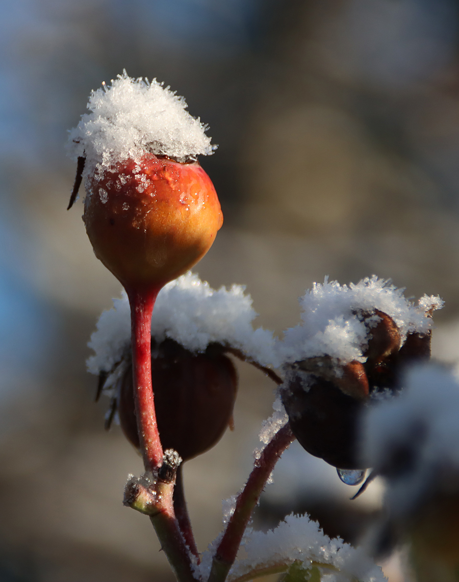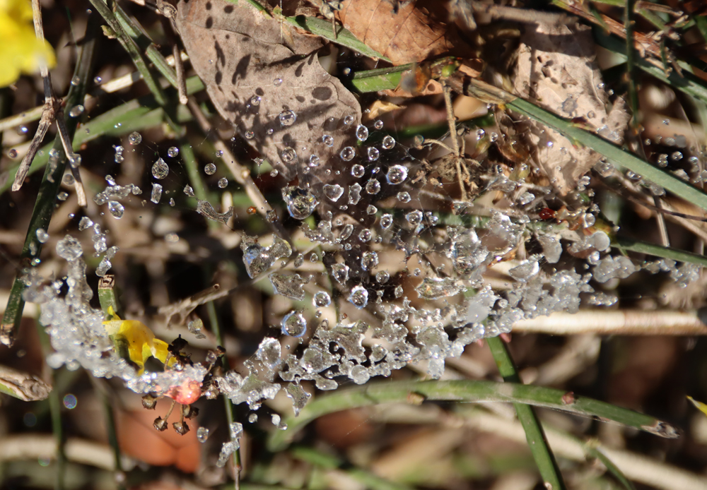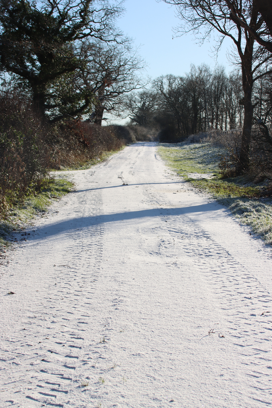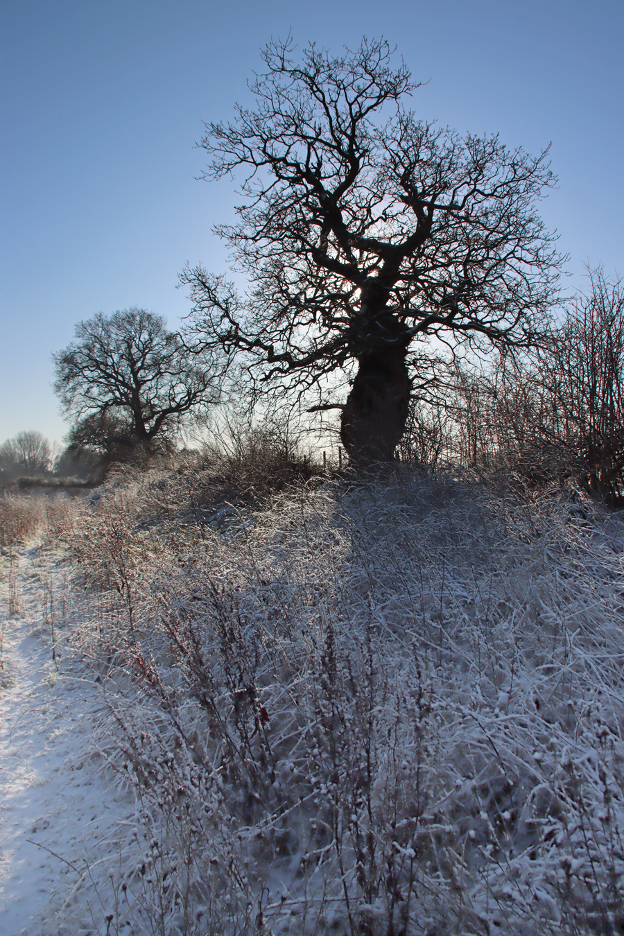 This is a pretty-pics post. It was a beautiful sunny January day today, after quite a lot of snowfall overnight. My garden was smothered in snow, and the car was fully shrouded. Even so, the sunshine was very warm and it was beginning to melt when I left the house at something past 11am, heading for Aldford and returning via the Roman Road (marked on the map at the end as Churton by Aldford FP9), making a good circuit. The views across the snow-covered fields to the hills to the east and west were lovely, but as always on these snowy walks, sometimes it is the close-up detail that is most lovely.