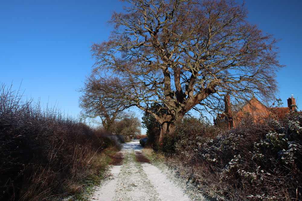 There is a map showing the route at the end. The whole walk, there and back, takes about an hour and a half, perhaps two hours if you are strolling rather than keeping up a brisk pace. To see what much of the same walk looked like in April 2021, here’s the earlier post. For those who like to include a destination on their walks, Churton has the attractive White Horse public house, and Aldford has the larger and venerable Grosvenor Arms. Both do good food and are warm and comfortable.