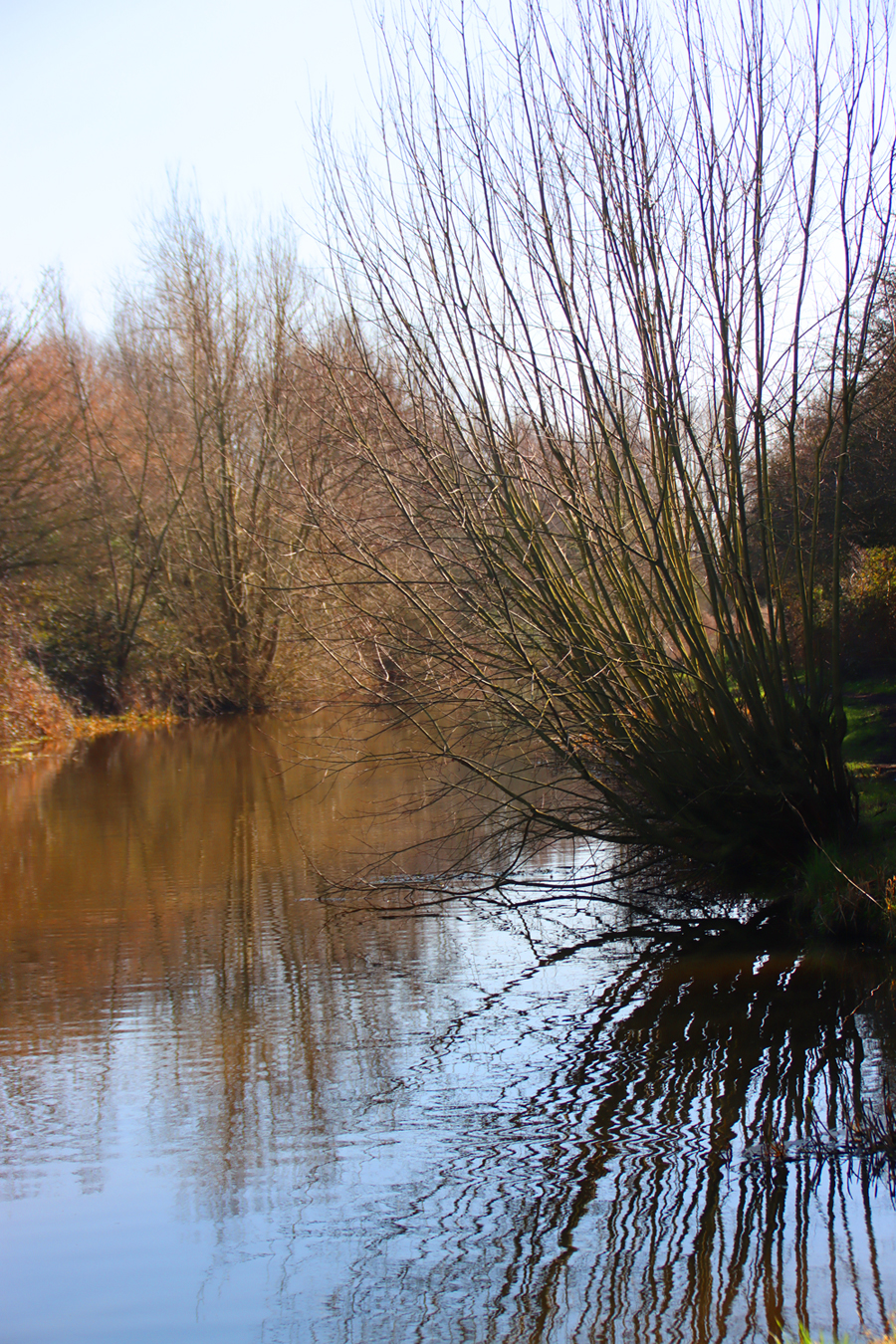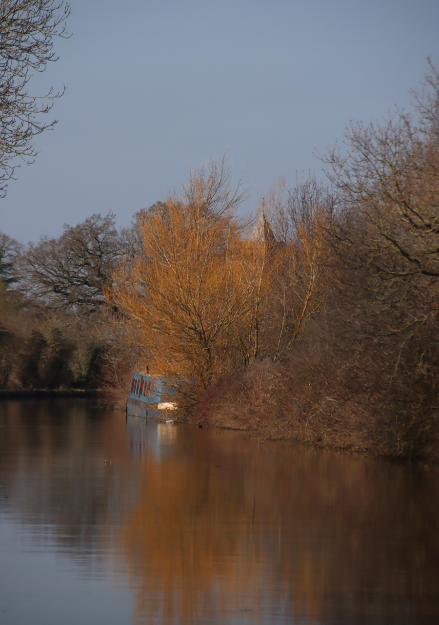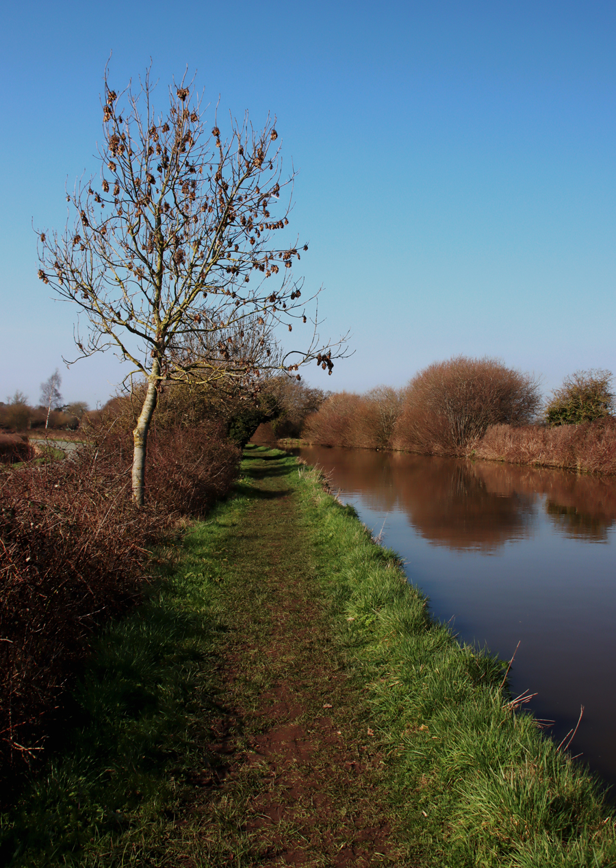 In late October last year I took advantage of a beautiful sunny day to walk the towpath along the Shropshire Union canal from Waverton towards Chester, which I posted about here. A couple of days ago the sky was clear and the sun was out, so I grabbed my rucksack and some damp-proof footwear (needed, as it was distinctly soggy underfoot) and headed out to do the section of the canal between Waverton and the wonderfully named Golden Nook Bridge, near the village of Hargrave, to its south, about an hour and a quarter away at a brisk pace stopping to take photos and chat to other walkers. It was a rewarding walk, even at this time of year when there were very few signs of spring beginning to make its mark. Because of the season, the light meant that the walk provided two different experiences, there and back, with a silvery, ethereal light on the way out and a much more colourful walk on the return leg. The birdsong was particularly lovely, and I have added a 36-second video at the end that was done purely to catch something of that sound.