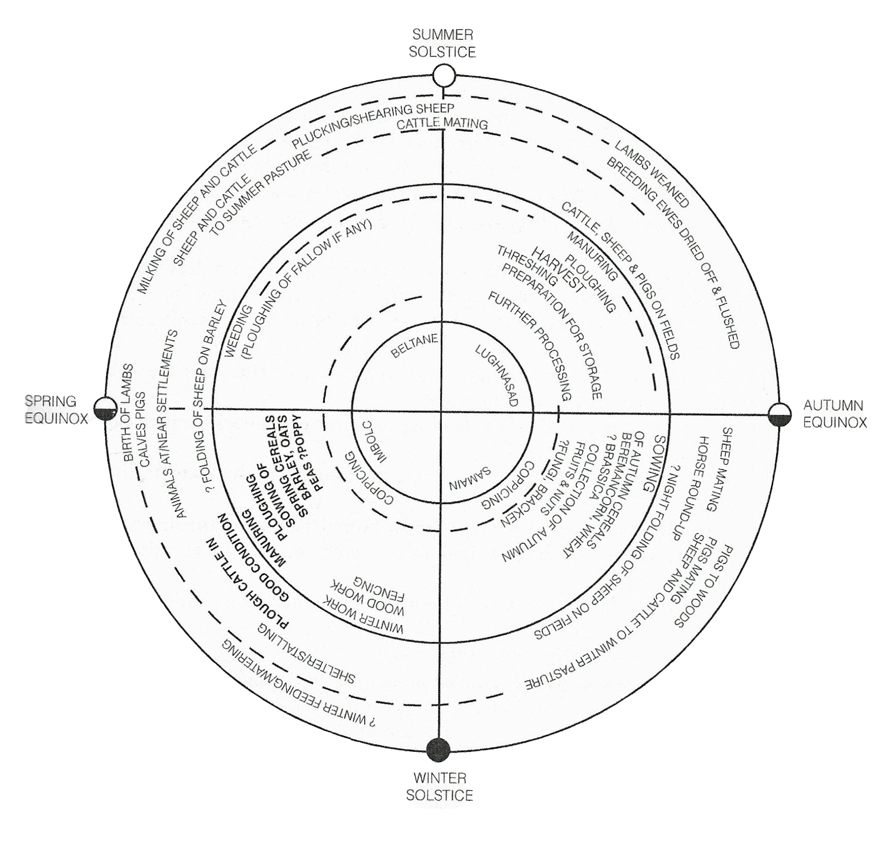 The farming year: a reconst5rcution based on evidence from settlements at Iron Age Danebury and region. Source: Cunliffe 2005, p.419, fig.16.5
