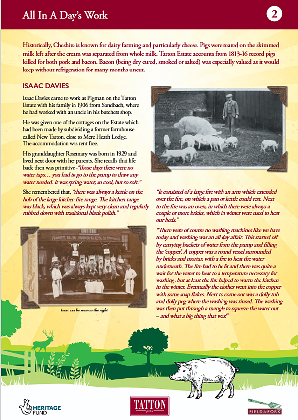 There’s an excellent 6-page PDF available from the Tatton Hall website about early 20th century pig keeping on the estate, focusing on Isaac Davies, who went to work as Pigman on the Tatton