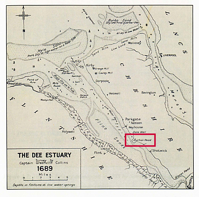 1732 map of the river Dee and estuary showing Burton Point. Source: sustainablebeach.co.uk