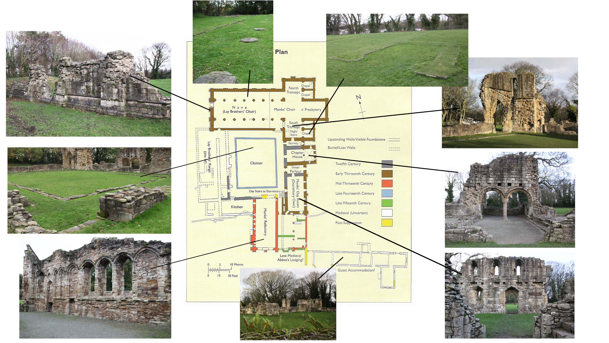 The building that may have been part of the guest quarters at Basingwerk Abbey. Its burned timbers were dendro-dated, giving the roof a date of c.1385