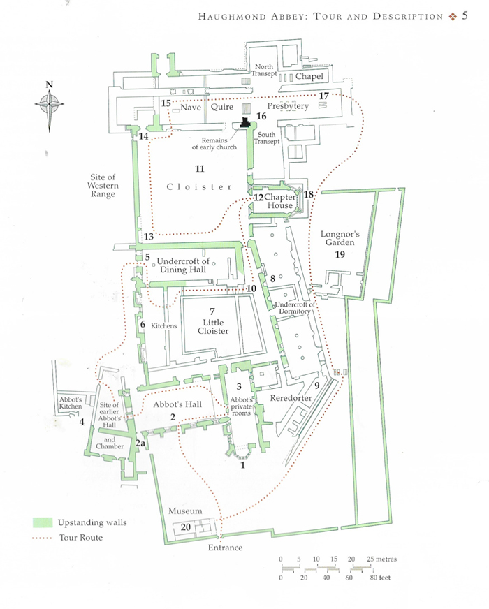 The other sites on the map shown here are described on the post about Greenfield Valley’s industrial heritage. The church of St James has been closed on the three occasions when I have visited, but it lies behind the chapel, just uphill from it. There is a cafe next to the abbey, on the bottom right of the map, but check the website listed below, because at the time of writing it is under refurbishment.