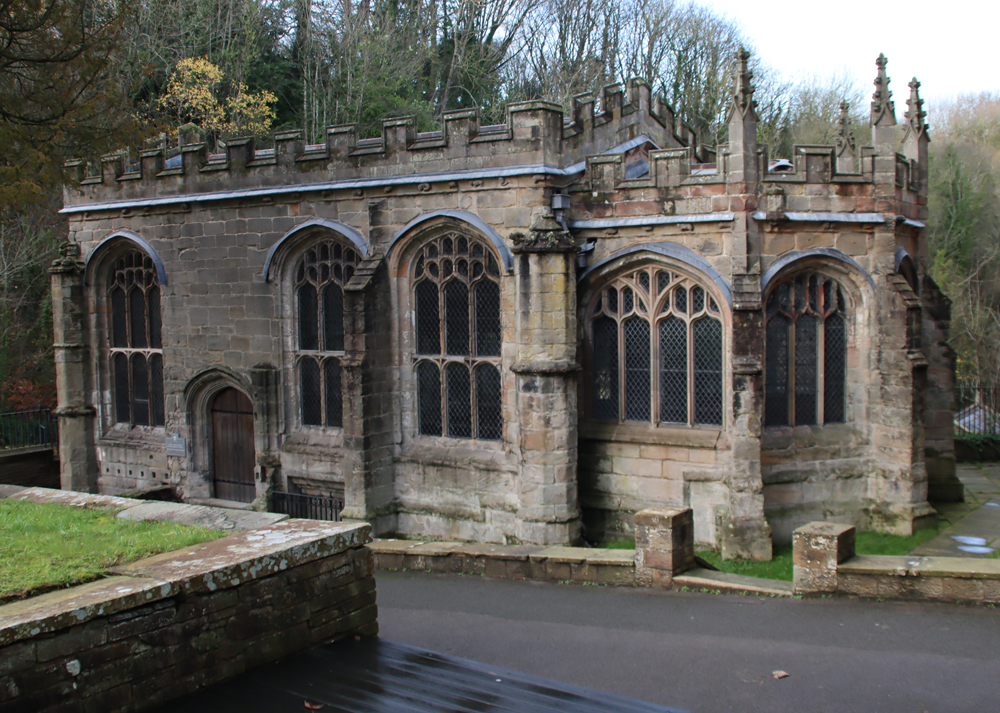 The parish church on the right and the upper chapel of St Winifride’s Well on the left, showing their proximity