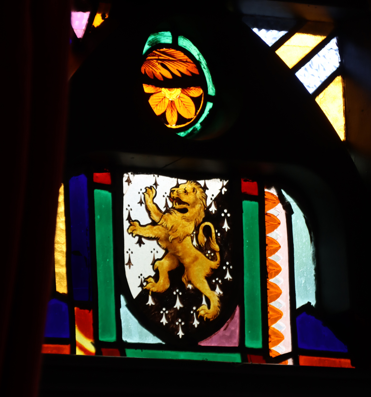 - The arms of Sir William Stanley (died 1495), brother of Thomas Stanley showing a wolf’s head enclosed in a garter (rewarded by Henry VII for his role in the Battle of Bodsworth of 1485 but executed in 1495 for conspiracy)