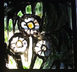 The idea for the exhibition was born around four years ago. Work has been concentrated in the last two years. There are so many different aspects to it that there it is difficult to do justice to it, but as a celebration of Trena Cox, of stained glass, and of how communities as well as individual artists can respond to an artist’s output, this was a revelation. Even more than the work of Trena Cox herself, I found the whole conceptualization of the exhibition with its multiple strands of knowledge transfer, and its outreach to the local community and other artists, truly engaging.